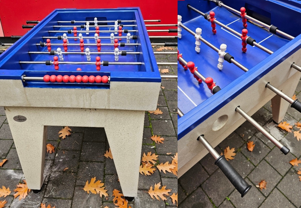 Neben den Tischtennisplatten steht nun auch ein Tischkicker auf unserem Schulhof.